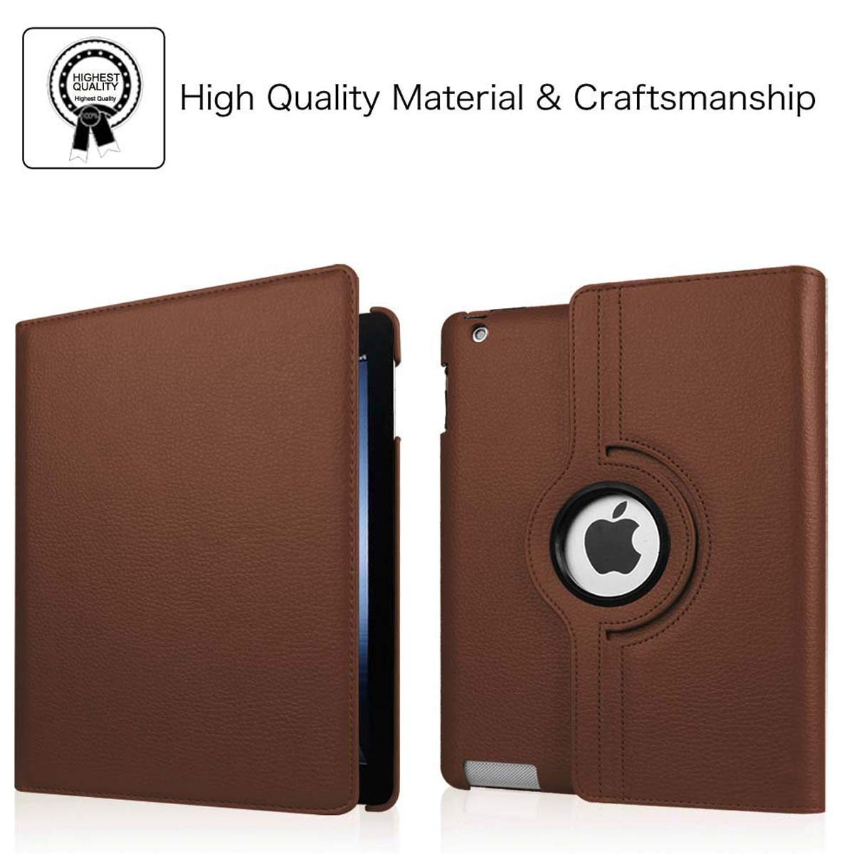 M Cart 360 Degree Rotating PU Leather Flip Case Cover for Apple iPad 2/iPad 3/iPad 4 (Model : A1460, A1459, A1458, A1416, A1430, A1403, A1397, A1396, A1395) (Brown)