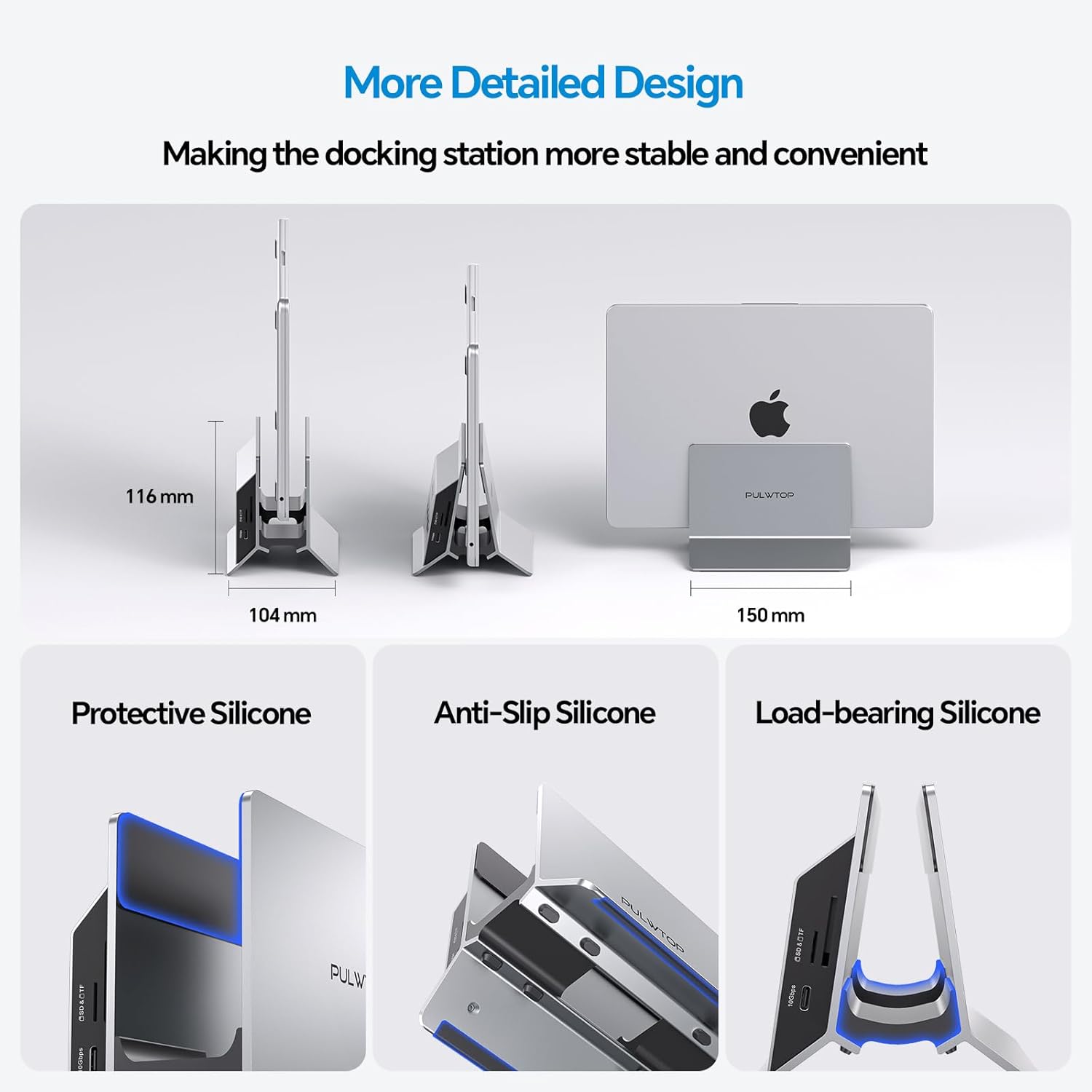 【2 in 1 Docking Station with Stand】This vertical docking station not only can meet the various needs of users, but also meet the laptop stand function (improve desktop utilization). The demolished bracket is enough to act as a laptop bracket to help increase space, create more working space, and increase productivity.
