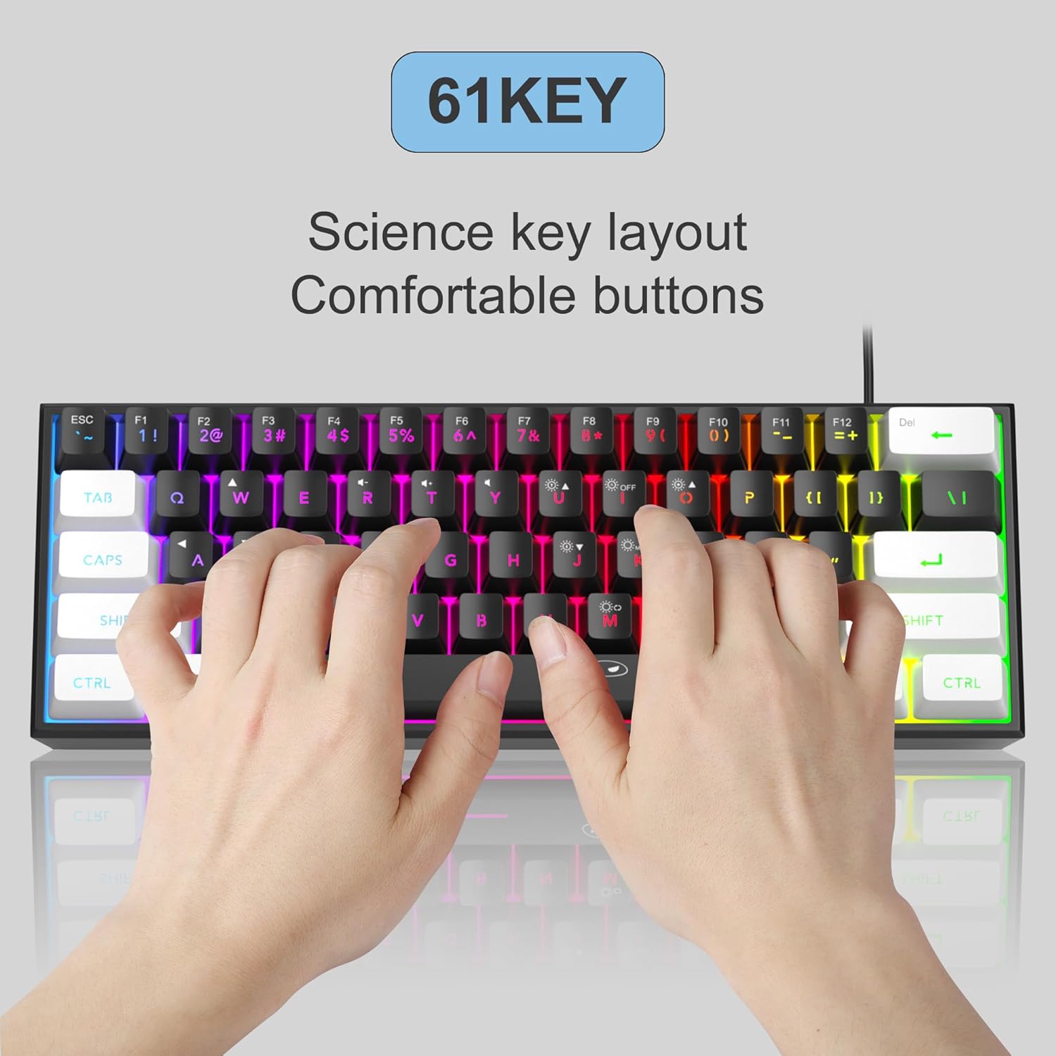 MageGee Mini 60% Gaming Keyboard,Rgb Backlit 61 Key Ultra-Compact Keyboard,Ts91 Ergonomic Waterproof Mechanical Feeling Office Computer Keyboard For Pc,Mac,Ps4,Xbox One Gamer,Wired(Black&White)