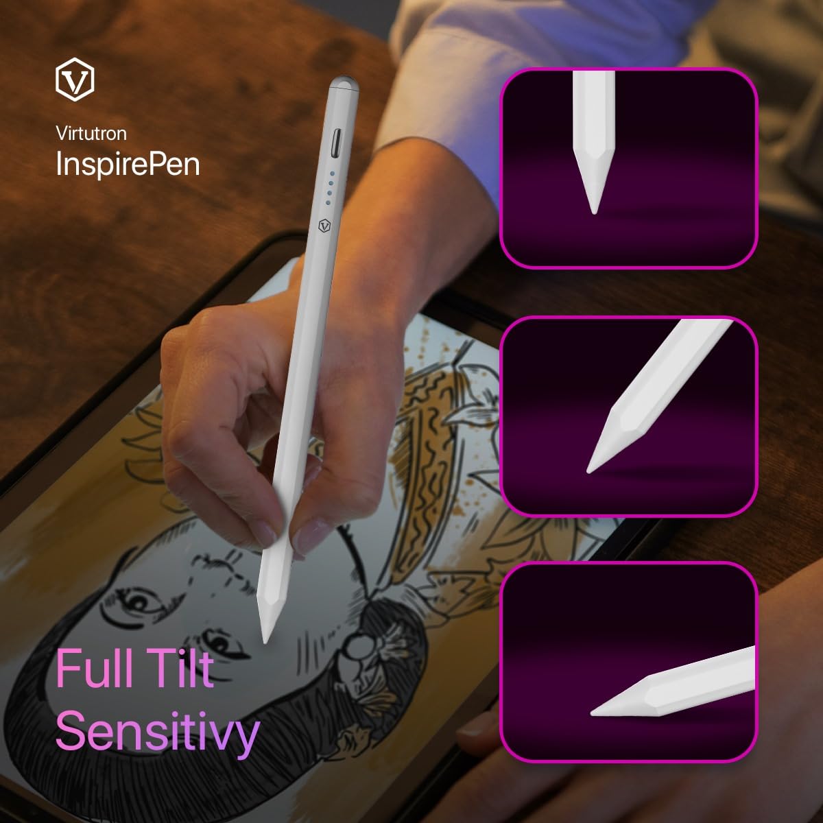 Palm Rejection: Virtutron Stylus Pen or Apple Compatible pencil Palm rejection provides a seamless user experience. It stops accidental touches and stray marks on your device. Our advanced system distinguishes between a stylus, fingertip, and palm, making your interaction easy and natural.