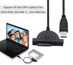 Product Type:USB 2.0 Sata Adapter Slim Line DVD Writer Version Color: Black This USB 2.0 to 7+6 13 Pin Slimline SATA Laptop CD/DVD Rom Optical Drive Adaptor Cable is the latest third generation product, smaller, lighter and firmer. It’s so practical, powerful and convenient for working normally. Connect 7+6 pin Slimline SATA optical drive to computer via USB port for easy test and data transfer. Support any Slimline SATA CD/DVD optical drive. USB 2.0 interface, support plug and play and Hot-swamping. Support USB 2.0 high-speed 480 Mbps and full-speed 12 Mbps. Good Safety: Off-line data protection, good safety Good Compatible: Can be used in multi plate data exchange Hardware Requirement: PC with USB port Simple Operation: No need power supply Operating System: Win 98/Me/2000/XP/Win 7, Compliant with serial ATA specification revision 2.0 and 1.0 One USB 2.0 type, a male and one 7+6pin SATA female connectors available. Power and access LED indicator available USB bus power mode, no external power required. No driver required for any OS Small size, light weight, very convenient to carry, easy to install.