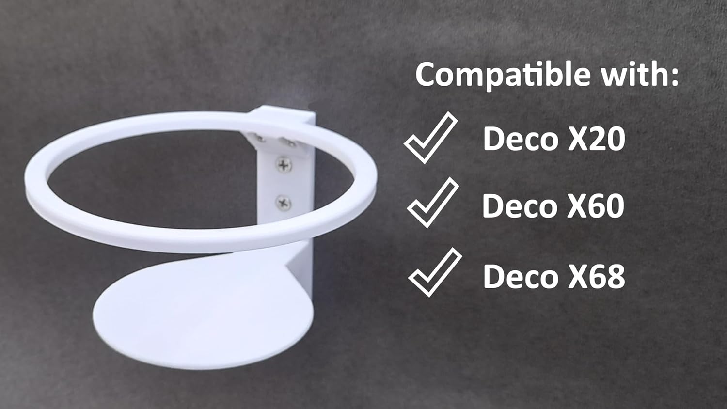 Pack of 3. Wall Mount Bracket/Holder compatible with Tp-Link Deco X10 X20 X60 X68 Mesh WiFi router. Light weight contruction. Mounts with 2 Screws. Screws included. Material: Plastic.
