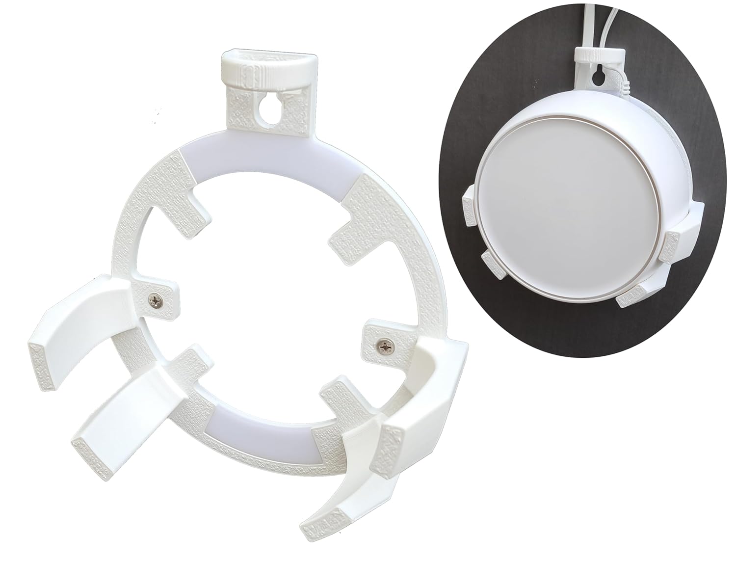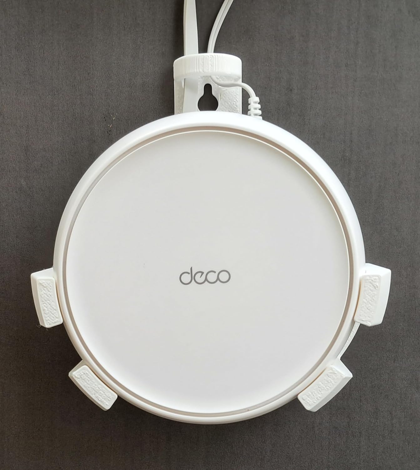 Transform your home networking setup with this thoughtfully designed wall mount bracket for the TP Link Deco BE25 mesh WiFi router. This space-saving solution securely holds your BE25 device with a positive seating mechanism that prevents accidental falls while maintaining optimal airflow between the device and wall. The versatile mounting options allow installation using either two screws or a single nail/hook, making setup a breeze(Screws are included). The bracket’s intelligent design features flexible cable routing from top or bottom, ensuring a clean, organised appearance. What sets this holder apart is its unique surface finish – even when the router’s status LED faces the wall, its reflection creates a visible halo on the holder’s surface, allowing you to monitor your device’s status at a glance. Perfect for those seeking to maximise space while maintaining their router’s performance and accessibility. Pack of 1.