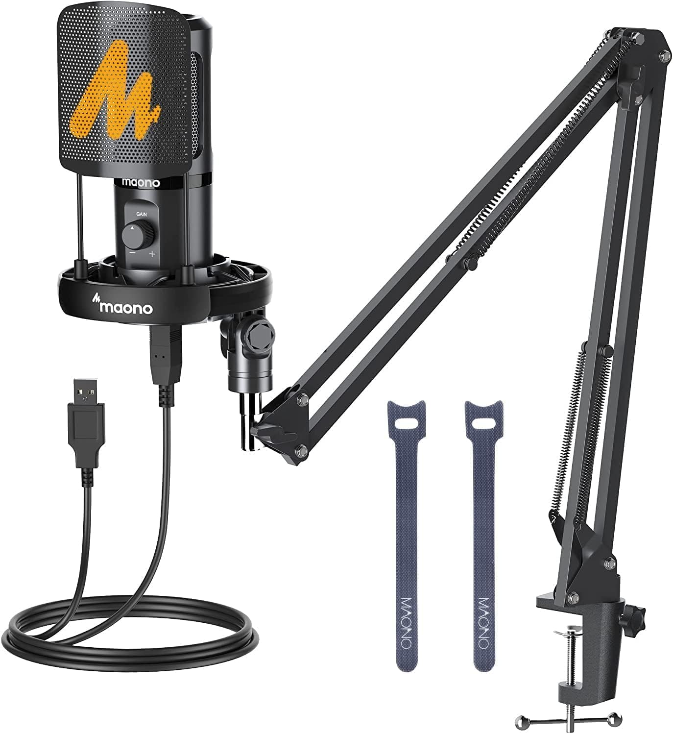 12-Month Warranty: MAONO provides a 12-month warranty and friendly tech support. What you get: 1x USB condenser microphone, 1x full metal arm stand, 1x shock mount, 1x metal pop filter, 1x table mounting clamp, 1x USB cable and 1x manual