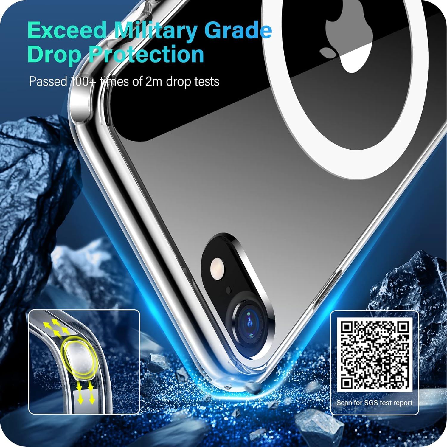 【Military Grade Protection + Green Materials, Dual Certified】Tested, wearing this case designed for iPhone SE 2022 4.7 inch, your phone is certified to survive even if it falls 100+ times from a height of 6Ft. All the materials used to make this case have been certified to be green. Pls refer to the third report picture.