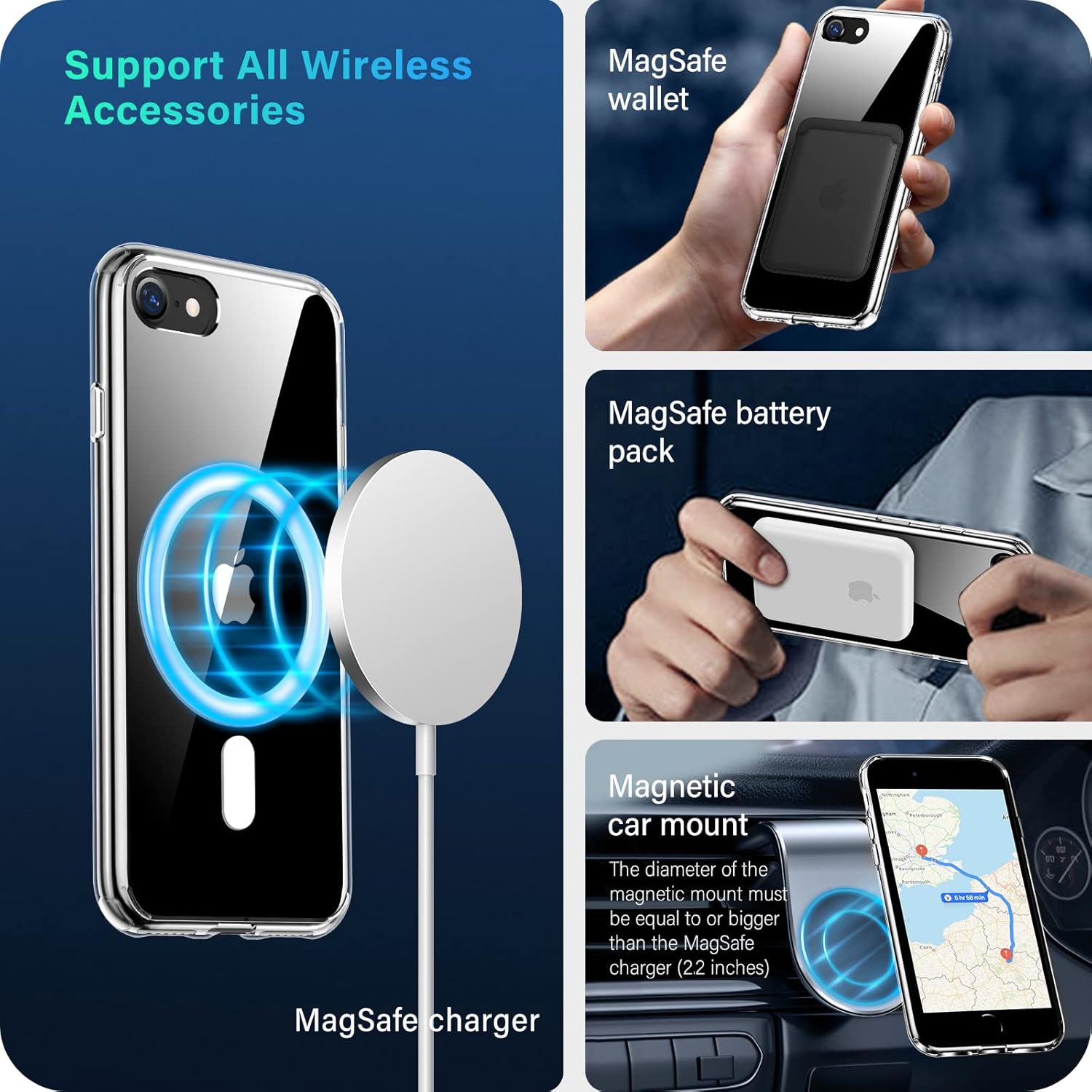 【Compatible with MagSafe Accessories & Qi Wireless Chargers】Built-in 38 magnets will automatically attach to those phone accessories that with magnetism. It is compatible with MagSafe chargers and third-party Qi-certified wireless chargers. It has 10 times stronger magnetic adsorption force without signal interference. You just need to put your SE 2022 on the charger without removing case when charging.