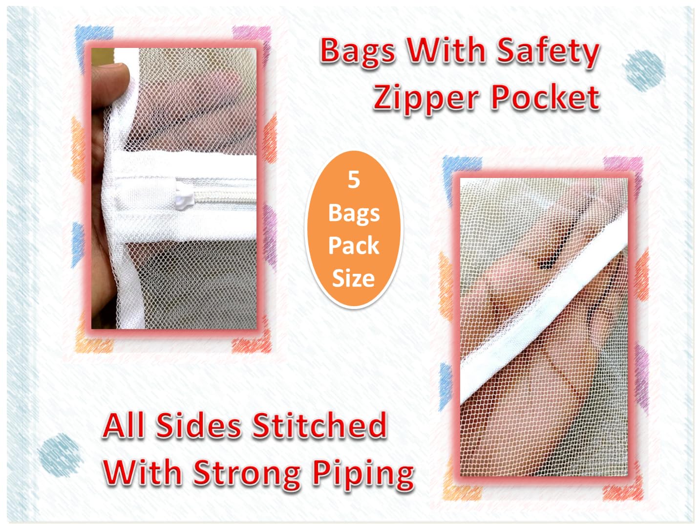 KITSEN Laundry Washing Bags also come with a safety zip pocket which protects the zip runner and prevents it from tangling with other cloths.