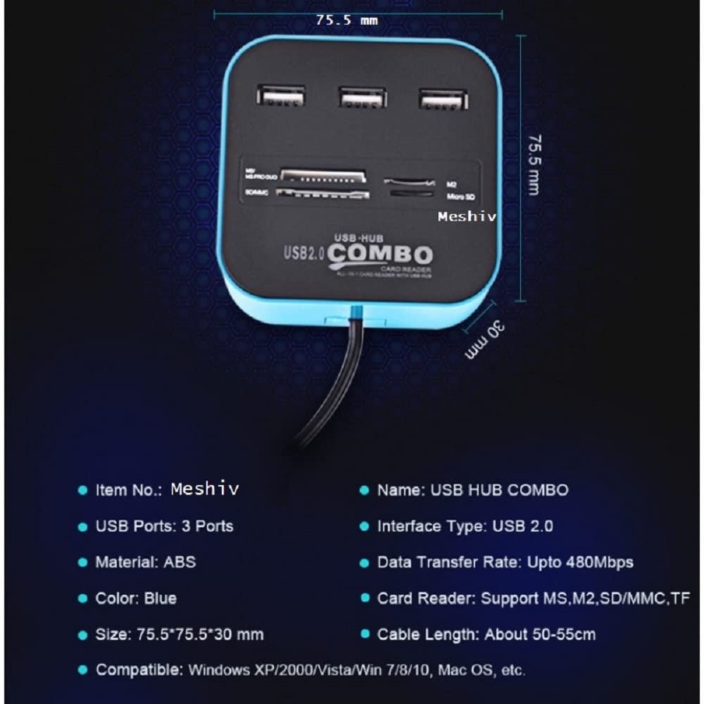 Meshiv USB Hub 2.0 Card Reader Combo 3 USB Ports and All in one Card Reader for Pen Drives Cameras Mobiles PC Laptop Notebook Tablet, Docking Station, MS, MS Pro, SD, Micro SD Support (Black)