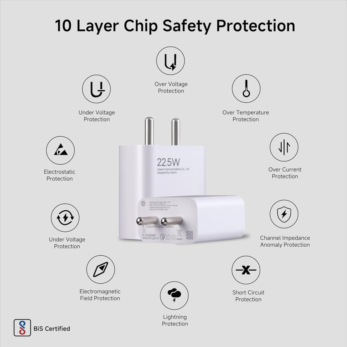 MI Xiaomi 22.5W Fast Charger with USB-C Cable, Quick Charge 3.0 Power Adapter Compatible with Redmi Note Series, Poco, Mi, Any Type C Devices – with Power Delivery (White)
