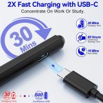 USB-C 30-Minute Fast Charging – The pen for surface pro uses a usb-c fast charging design, which can be used for up to 60 hours after charging for 30 minutes. In addition, the surface pro pen can automatically sleep after 10 minutes of inactivity. This greatly reduces battery consumption and extends the life of the Surface stylus.