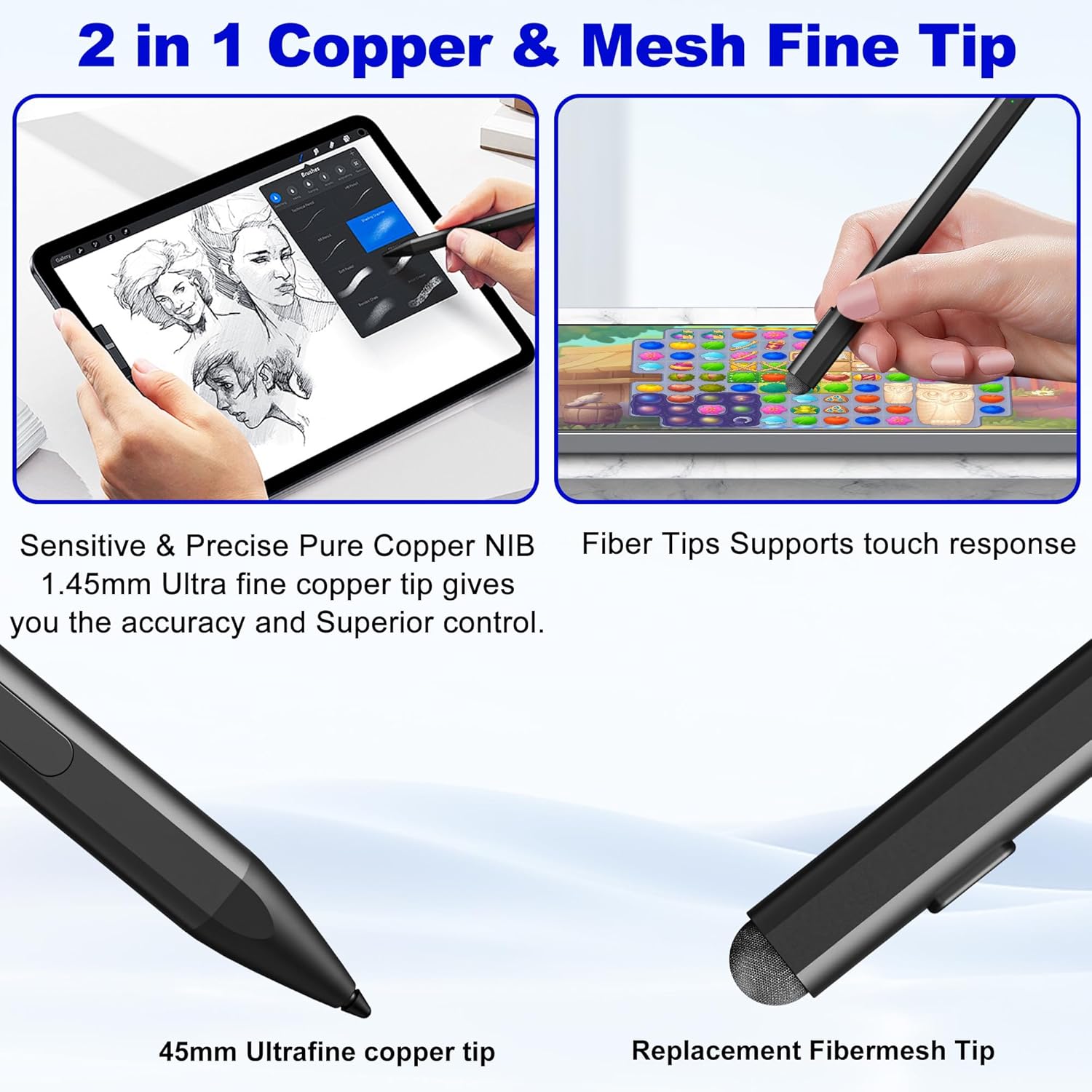 Anti Palm Touch Technology – Stylus for Surface Pro have anti palm touch technology. When drawing or handwriting, your hand can be naturally supported on the tablet screen without worrying about unintentional touching of the screen by your hand, resulting in interruption of text or drawing input. It’s as easy and natural as drawing and writing on paper! Very free flowing.