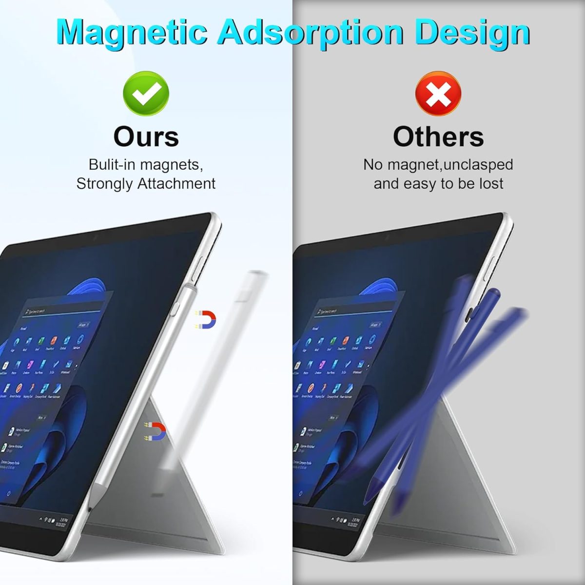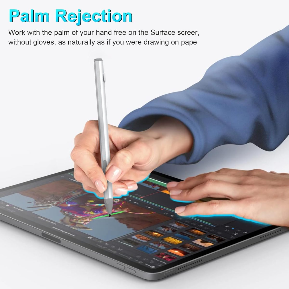 Palm Rejection & Magnetic Design: The Surface Pro pen with palm rejection, allowing you to comfortably rest your hand on the screen while creating. The magnetic design enables the surface pen to be securely attached to the tablet, making it more convenient to store and locate while in use.
