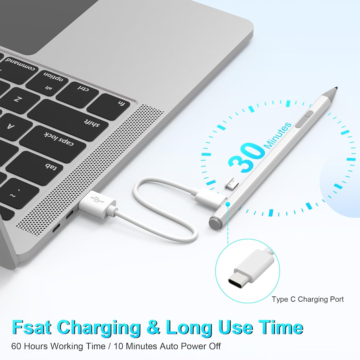 Type-C Fast Charge & Smart Standby: The Surface Pro stylus pen introduces a Type-C fast charging design and built-in rechargeable battery, enabling you to recharge it quickly. This microsoft surface pro pen only takes 30 minutes to fully charge for 60 hours of battery life. Automatically turn in “Sleep Mode” if idle for 10 minutes to save power.Perfect for students, business professionals, and creators who take notes and draw frequently.