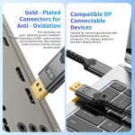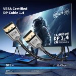 ① 8K/4K Clarity for Ultra HD performance: This DisplayPort 1.4 cable delivers crystal-clear visuals at 8K@60Hz, 4K@144Hz, or 2K@240Hz. Enjoy Dynamic HDR and HDCP 2.2 support for vibrant colors and contrast, with full backward compatibility for DisplayPort 1.3/1.2/1.1 devices. Unlock your monitor’s and GPU’s full potential!