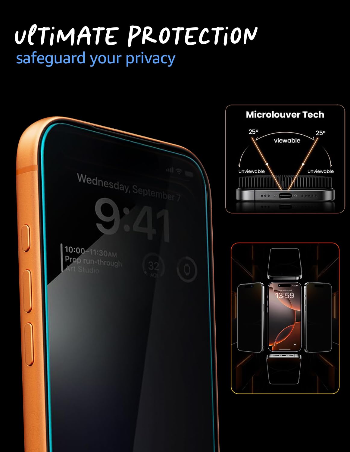 Military-Grade Privacy Protection – Lensarmor military grade tempered glass with 9H hardness keeps your 17 Pro display safe from scratches, shocks, and drops, while adding a two-way privacy shield.