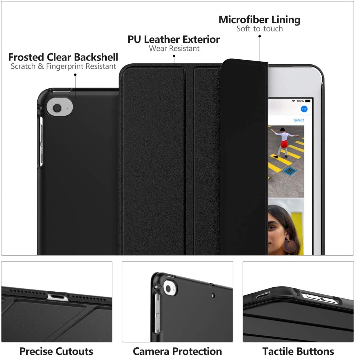 MOCA Case for 7.9″ inch iPad Mini 5 / Mini 4 iPad Mini A2133 A2124 A2126 A2125 A1538 A1550 Translucent Back Stand Flip Cover case (Black)