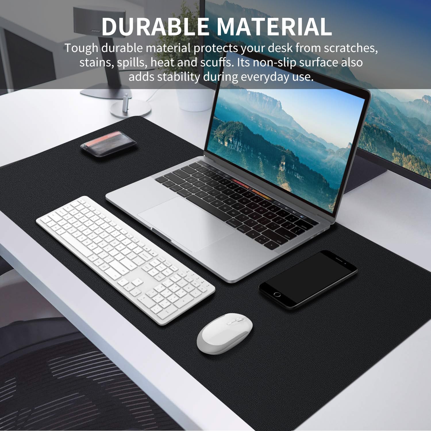 PROTECT YOUR DESK Made of durable PVC leather material, which protects your desk from scratches, stains, spills, heat and scuffs. It also gives your office a modern and professional atmosphere when you put it on your desktop. Its smooth surface will make you enjoy writing, typing and browsing. It is perfect for both office and home.