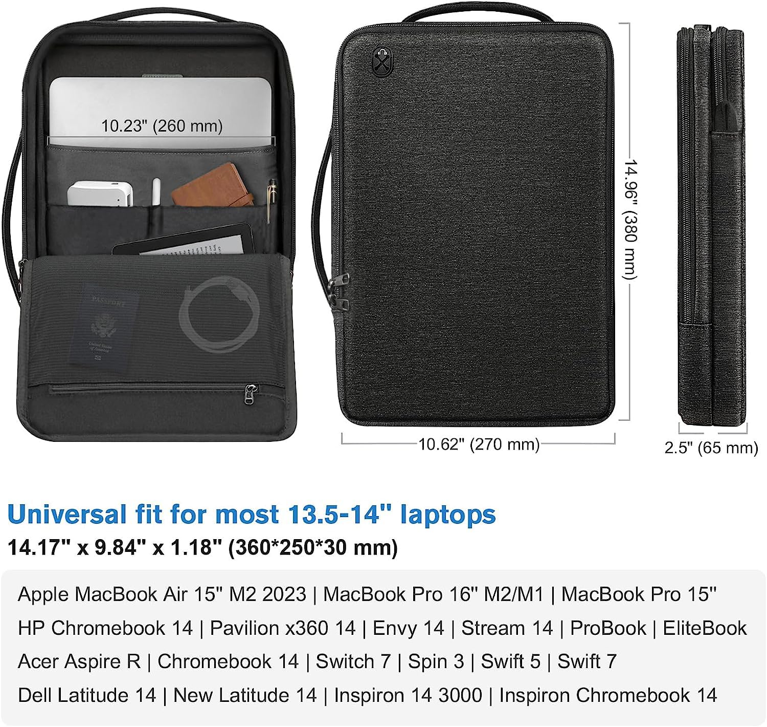 MOCA Handbag, Black – 15.75×11.42×1.18 inches Laptop Shoulder Bag for 14-inch HP, Acer, Dell, MacBook Pro/Air, Water-Resistant, Shockproof, Business, Travel