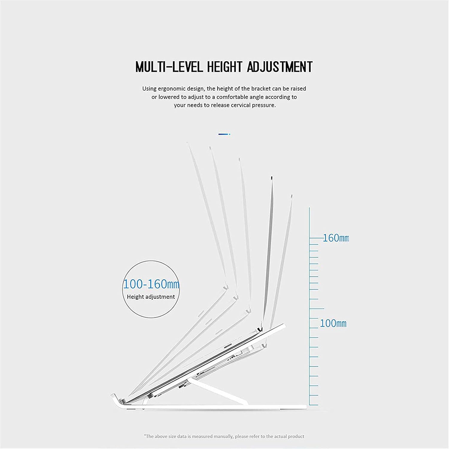 Ergonomic Design : Adjust Foldable Laptop Riser to the ideal height to minimize neck fatigue. Sit properly in a comfortable posture and prevent neck and back pain.