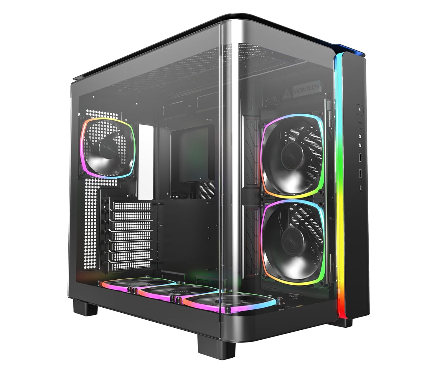 MONTECH King 95 PRO Dual-Chamber ATX Mid-Tower PC Gaming Case, High-Airflow, Toolless Panels, Sturdy Curved Tempered Glass Front, Six ARGB PWM Fan Pre-Installed with Fan Hub, King 95 PRO Black US