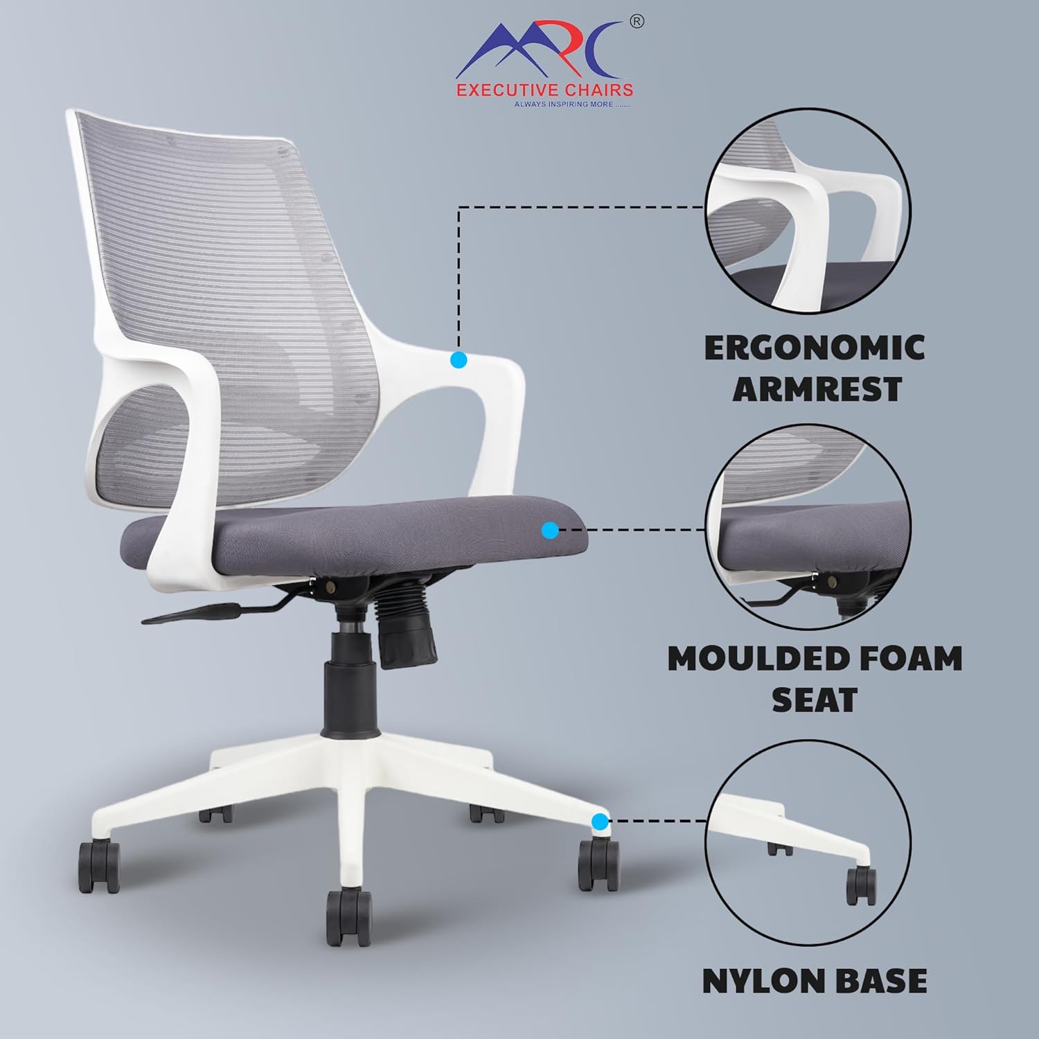 MRC executive Chairs, are the manufacturers of entire range of Executive chairs, Gaming chairs Office chairs and Cafeteria chairs. With its commitment to quality, innovation and unswerving determination, it has grown in stature and size in such a short span of time.
