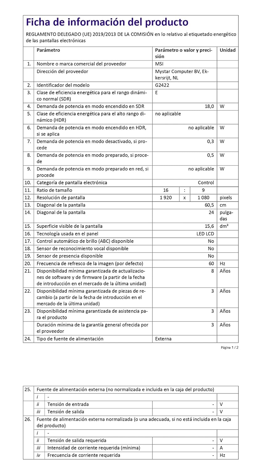 MSI G2422 23.8 Inch FullHD (1920×1080) 170Hz Refresh Rate 1ms Wide Color Gamut AMD FreeSync™ Premium Technology Anti-Flicker and Less Blue Light IPS Panel Esports Gaming Monitor