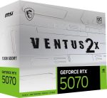 Introducing the MSI GeForce RTX 5070 12G VENTUS 2X OC WHITE, a high-performance graphics card designed for gamers and creators seeking both power and style. Key Features: NVIDIA Blackwell Architecture: Harnessing the advanced NVIDIA Blackwell architecture, the RTX 5070 boasts 6,144 CUDA® cores, delivering significant improvements in performance and energy efficiency. Ample Memory Capacity: Equipped with 12GB of GDDR7 memory on a 192-bit bus, operating at a memory speed of 28 Gbps, this card ensures swift data access and smooth handling of high-resolution textures and complex computations. Enhanced Clock Speeds: Achieves extreme performance with core clocks reaching up to 2,557 MHz using MSI Center, ensuring smooth and responsive gameplay. Dual-Fan Thermal Design: Features a dual-fan thermal solution with TORX Fan 5.0, enhancing airflow and ensuring superior, quieter cooling performance during intensive gaming sessions. Sleek Aesthetic: The all-white design of the VENTUS 2X OC WHITE edition adds a modern and clean look to any build, making it an ideal choice for those seeking both performance and style. Advanced Connectivity: Includes three DisplayPort 2.1b ports and one HDMI™ 2.1b port, supporting up to 4K at 480Hz or 8K at 120Hz with DSC, catering to the latest high-definition displays. AI-Powered Graphics: Supports NVIDIA’s latest AI-driven technologies, such as DLSS 4 and Multi-Frame Generation, enhancing image quality and performance in supported games and applications. Durable Design: Encased in a resilient enclosure with a sleek aesthetic, the VENTUS 2X OC WHITE seamlessly fits into any build, ensuring longevity and reliability. Power Requirements: With a power consumption of 250W, it is recommended to pair this card with a 650W power supply for optimal performance. Elevate your gaming and creative endeavors with the MSI GeForce RTX 5070 12G VENTUS 2X OC WHITE, where cutting-edge technology meets superior design to deliver unparalleled performance.
