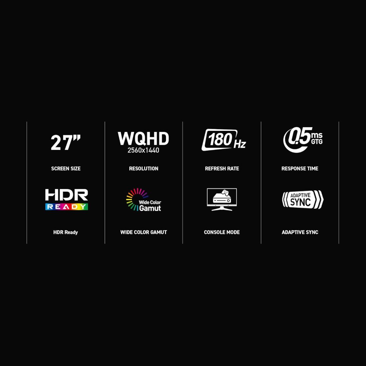 MSI MAG 275QF 27-inch 2K Gaming Monitor, 2560 x 1440 (UHD), 0.5ms Response Time, 180Hz, HDR Ready, HDMI, DP Port, Tilt Adjustable