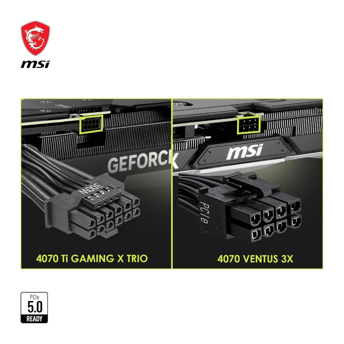 PCIe 5.0 READY – The 16-pin connector is compliant with PCIe 5.0, enabling to support the RTX 4070* series graphics cards. *RTX 4070Ti SUPRIM X 12 G is not compatible.