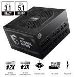 80 PLUS GOLD CERTIFIED – An efficient power supply reduces energy consumption and heat load of the system. 80 PLUS Gold (up to 90%) is ideal for hardware with high power consumption such as high-end GPUs and CPUs ATX 3.1 FULLY MODULAR – With ATX 3.1, the PSU can handle up to 2x total & 3x GPU power excursions, supporting even the most demanding GPUs; A full modular format with flat black cables (including cable bag) helps reduce clutter & improve airflow PCI-E 5.1 GPU SUPPORT – With the native 16-pin (12V2x6) PCIe connector, the PSU can feed up to 450W of power to a PCIe 5.1 GPU (NVIDIA & AMD supported) with a yellow plug to highlight any loose fit; A single-rail design provides ample power to the system COMPACT DESIGN – A 120mm fluid dynamic bearing (FDB) fan offers reliable cooling performance; The compact ATX frame runs only 140mm in length, leaving extra space for airflow & cable management DURABLE DESIGN – A full-bridge LLC with DC-to-DC converter & active PFC design ensures robust output (OCP, OVP, OPP, OTP, SCP, UVP protections); Includes a 7-year limited warranty