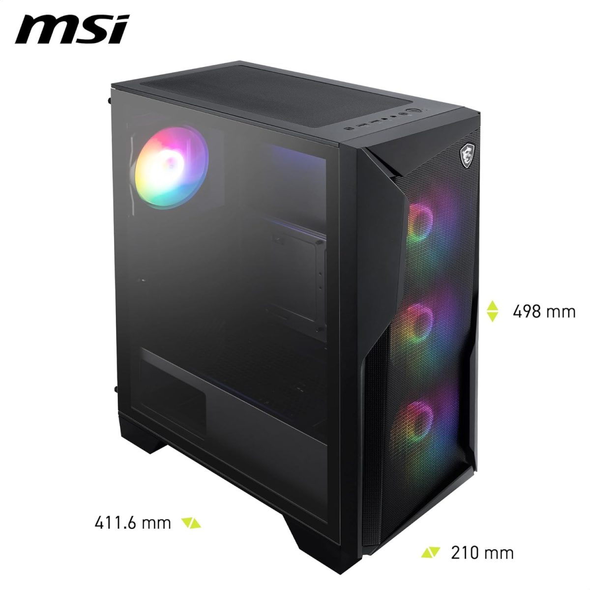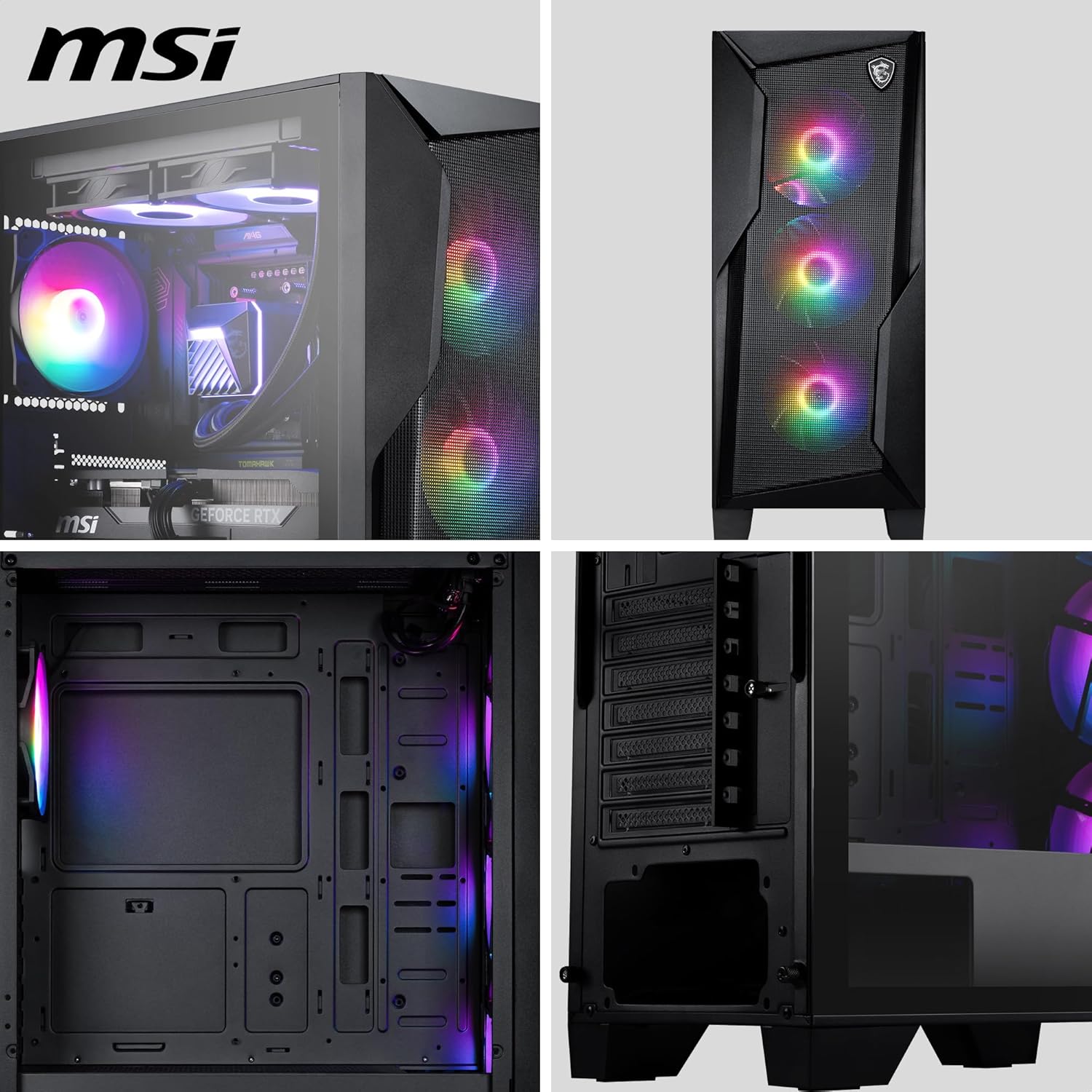 MSI MAG Forge 130A Airflow – Mid-Tower PC Case – High Airflow, ATX Capacity, 240 mm Radiator, Four Pre-Installed Auto-RGB Fans, Tempered Glass Side Panel – Black