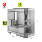 Introducing the MSI MAG PANO M100R PZ White Edition: Immerse yourself in a world of pristine elegance and superior performance with this stunning mid-tower gaming case. The MAG PANO M100R PZ in White combines a sleek design with advanced features, providing a premium home for your gaming rig. Step into a realm of purity and sophistication with the White Edition of the MAG PANO M100R PZ. The immaculate white finish, paired with a captivating panoramic tempered glass window on the front panel, allows you to showcase your high-performance components and vibrant RGB lighting in a clean and minimalist aesthetic. This case is not just a housing for your gaming rig; it’s a statement piece for your setup. Keep your cool under the most demanding gaming scenarios with the MAG PANO M100R PZ White. Engineered with a focus on efficient airflow, this case supports up to six 120mm fans or a 360mm radiator on the front, and a 240mm radiator on the top. The optimized cooling system ensures that your components stay at the ideal temperature, even during intense gaming sessions. Adaptability is key, and the MAG PANO M100R PZ White Edition delivers. Supporting Micro-ATX and ITX motherboards, this case provides a versatile internal layout for various system configurations. The modular design facilitates easy installation of components, while magnetic dust filters keep your system pristine and operating at peak efficiency. Elevate your gaming experience with customizable RGB lighting options. The MAG PANO M100R PZ White Edition features built-in RGB lighting on the front panel, allowing seamless synchronization and control with MSI Mystic Light software. Immerse yourself in a dazzling visual spectacle with a spectrum of colors and effects tailored to match your gaming style. MSI’s commitment to quality is evident in every detail of the MAG PANO M100R PZ White Edition. Built with robust materials and meticulous attention to detail, this case guarantees longevity and reliability, safeguarding your valuable gaming components. Upgrade your gaming setup with a touch of sophistication and uncompromising performance – choose the MSI MAG PANO M100R PZ White Edition, where elegance meets power for the ultimate gaming experience