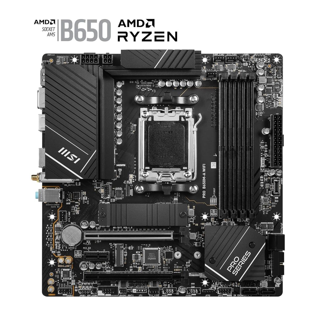 Ryzen 7000 READY – The PRO B650M-A WIFI is a compact M-ATX motherboard outfitted with the AMD B650 chipset (AM5, Ryzen 7000 ready); The VRM features MSI Core Boost technology for improved stability & performance
