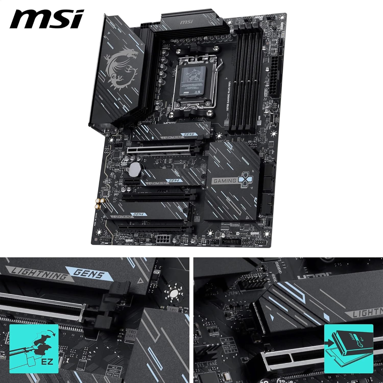 TRIPLE M.2 CONNECTORS – Storage options include 1 x M.2 Gen5 x4 128Gbps slot with EZ M.2 Shield Frozr II to prevent thermal throttling, 2 x M.2 Gen4 x4 64Gbps slots