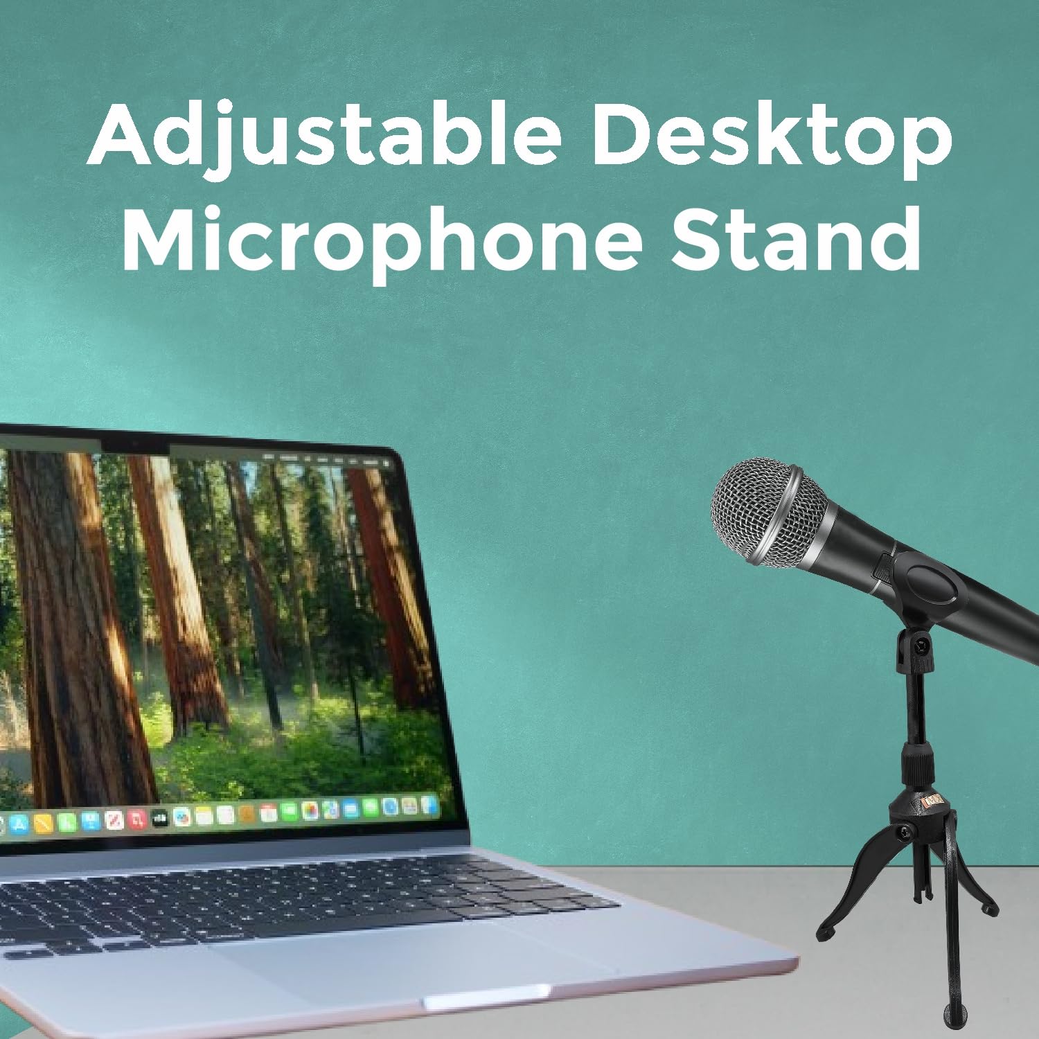 MX Desktop Tripod Microphone Stand with Adjustable Height | Compact & Stable Mic Holder for Podcasting, Streaming, Recording, and Online Meetings | Universal Mic Clip Included