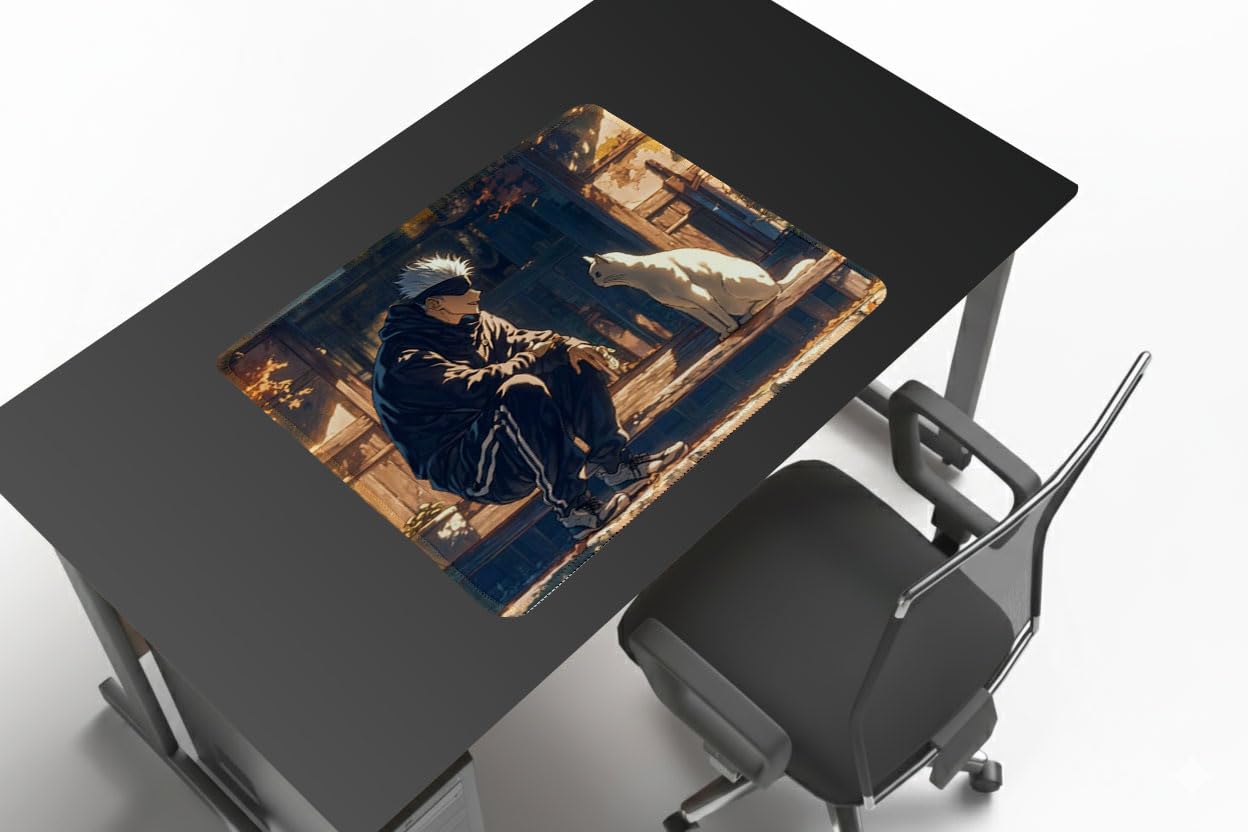 Aesthetic Anime Art Design: Features a stunning, high-definition anime-inspired illustration of a boy and a cat, adding calmness and creativity to your gaming or office setup — perfect for anime lovers and aesthetic desk enthusiasts.