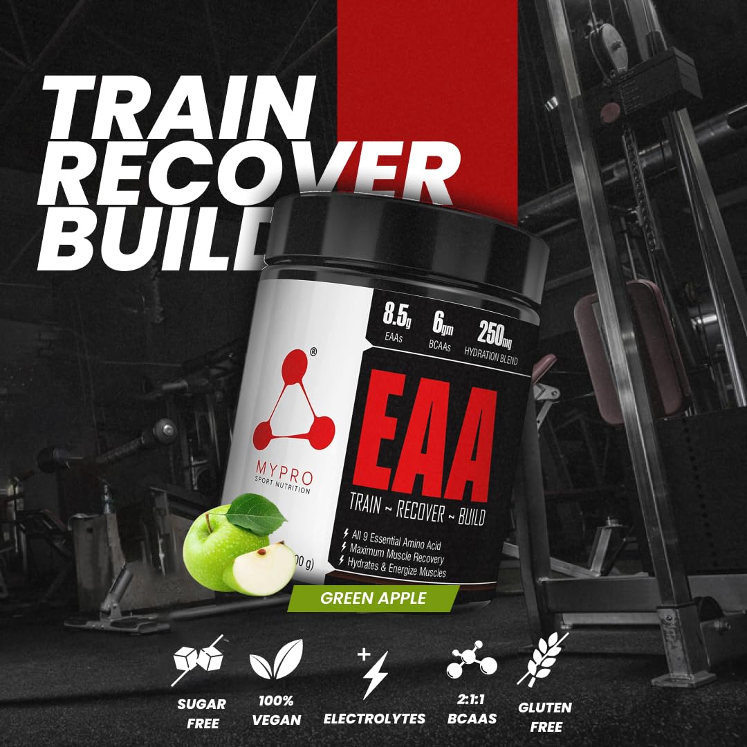Mypro Sport Nutrition EAA Supplement 8500 mg EAA,6000mg BCAA,992 mg Hydration Blend For Muscle Recovery&Performance All 9 Essential Amino Acid EAA Powder-300 Gm (Green Apple)