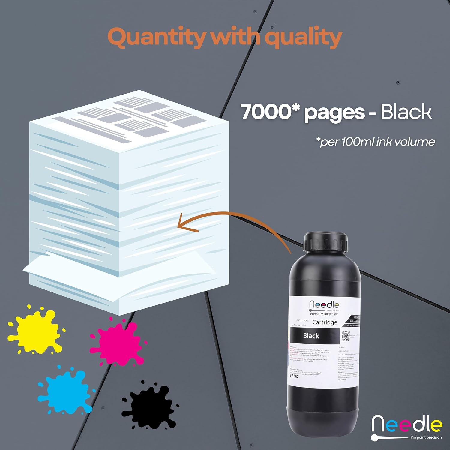 Needle 1 KG Cartridge Refill Ink | Made in India | Compatible with Inkjet Printers | Easy Ink Refilling Solution (Black)