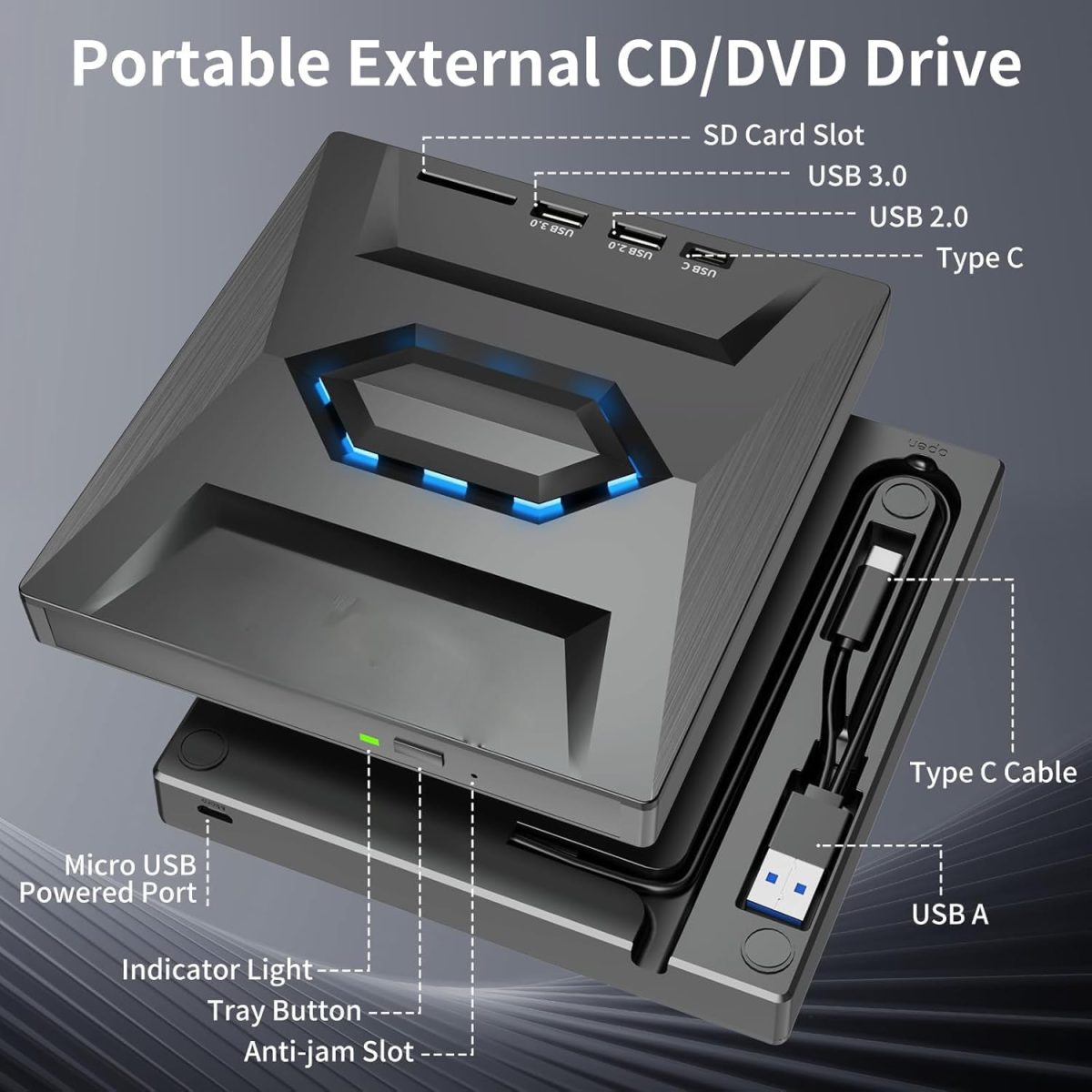 High-Speed Data Transfer for Quick File Burning: With USB 3.0 technology, experience fast data transfer speeds, allowing you to burn CDs and DVDs or read media files in a matter of seconds without delay.