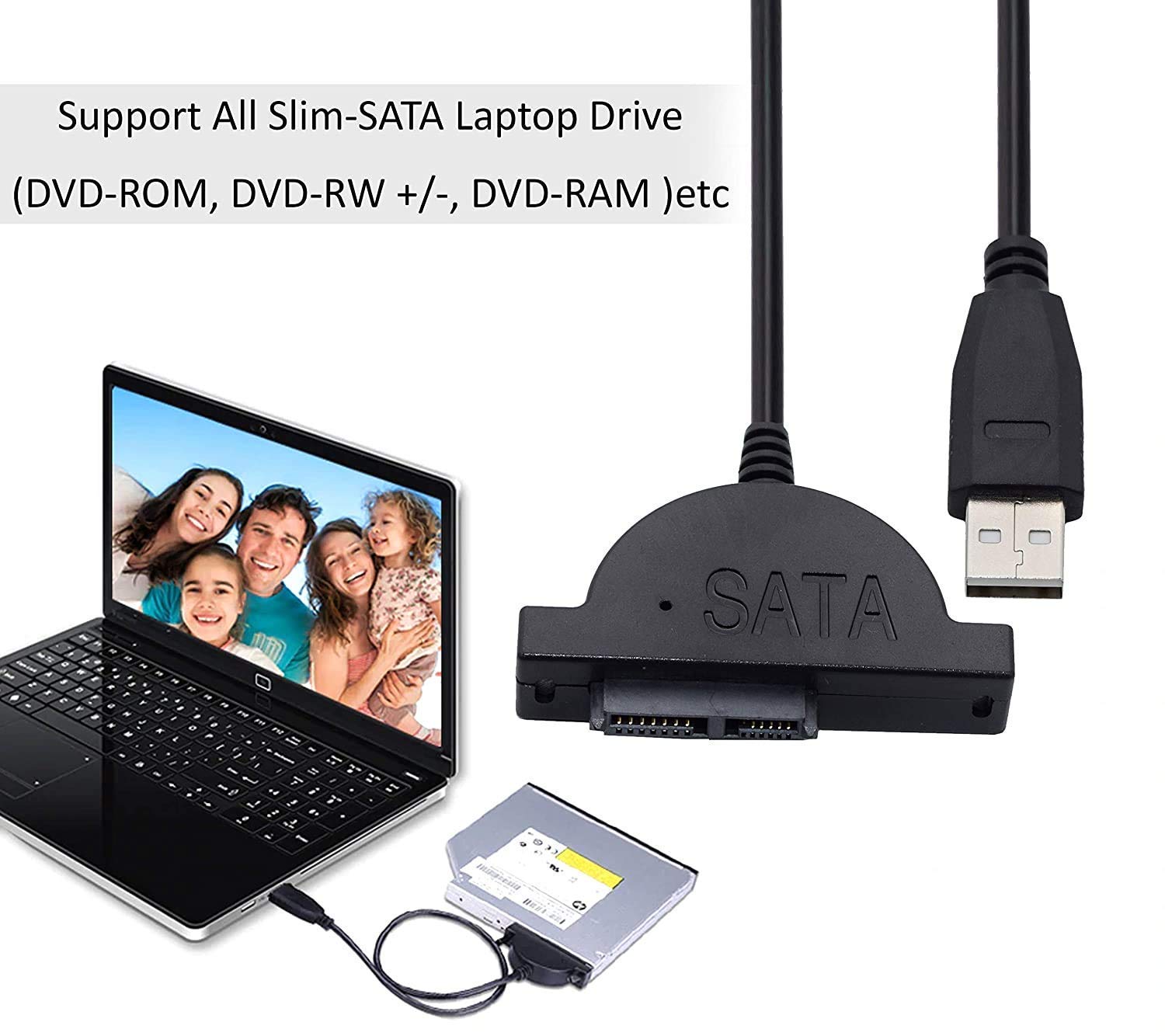 USB 2.0 to 7+6 13Pin Slimline SATA Adapter cable For Laptop CD/DVD Rom Optical Drive: Product Type:USB 2.0 Sata Adapter Slim Line DVD Writer Version Color: Black This USB 2.0 to 7+6 13 Pin Slimline SATA Laptop CD/DVD Rom Optical Drive Adaptor Cable is the latest third generation product, smaller, lighter and firmer. It’s so practical, powerful and convenient for working normally: Connect 7+6 pin Slimline SATA optical drive to computer via USB port for easy test and data transfer. Support any Slimline SATA CD/DVD optical drive. USB 2.0 interface, support plug and play and Hot-swamping. Support USB 2.0 high-speed 480 Mbps and full-speed 12 Mbps.: Good Safety: Off-line data protection, good safety Good Compatible: Can be used in multi plate data exchange Hardware Requirement: PC with USB port Simple Operation: No need power supply Operating System: Win 98/Me/2000/XP/Win 7: