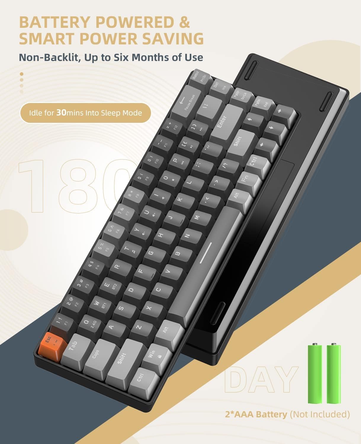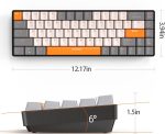 Number of Keys 68 Keys (With Arrow Keys) Connection protocol Bluetooth / 2.4G Wireless (Adapter Included) Multipoint Upto 3 devices (2 X Bluetooth, 1 X 2.4G wireless) Power 2 X AAA batteries – 6 months life (batteries not included) Compatibility PC, Mac, Android, iOS, Linux Lighting Effects Non-backlit design Switch Type Red / Blue options Box Includes Keyboard, 2.4G USB receiver (Type A / Type C switchable ) Keycap Puller, Switch Puller, Manual