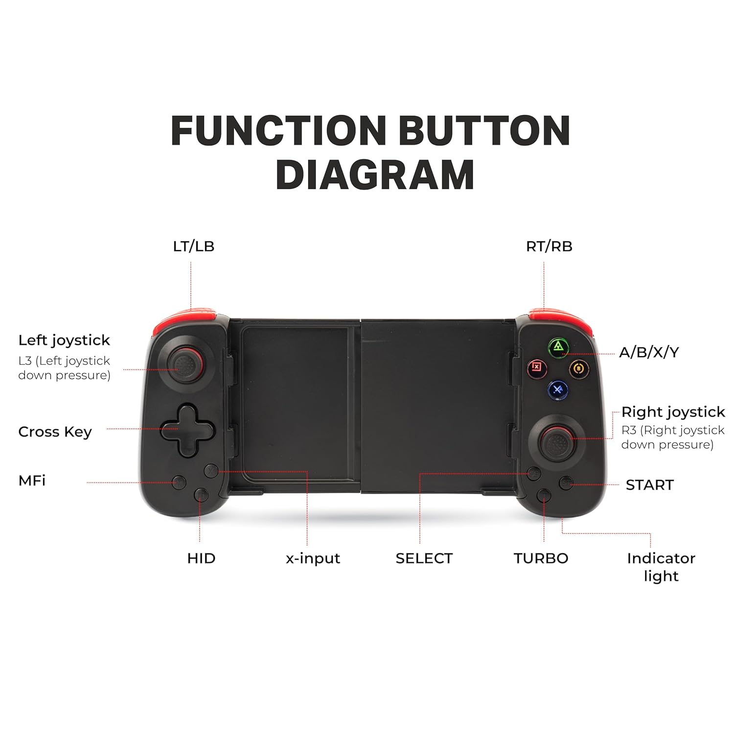 EXTENDABLE DESIGN: Adjustable telescopic grip extends from 127 mm to 180 mm, fitting a wide range of smartphones and handheld devices securely for a stable gaming experience on mobile