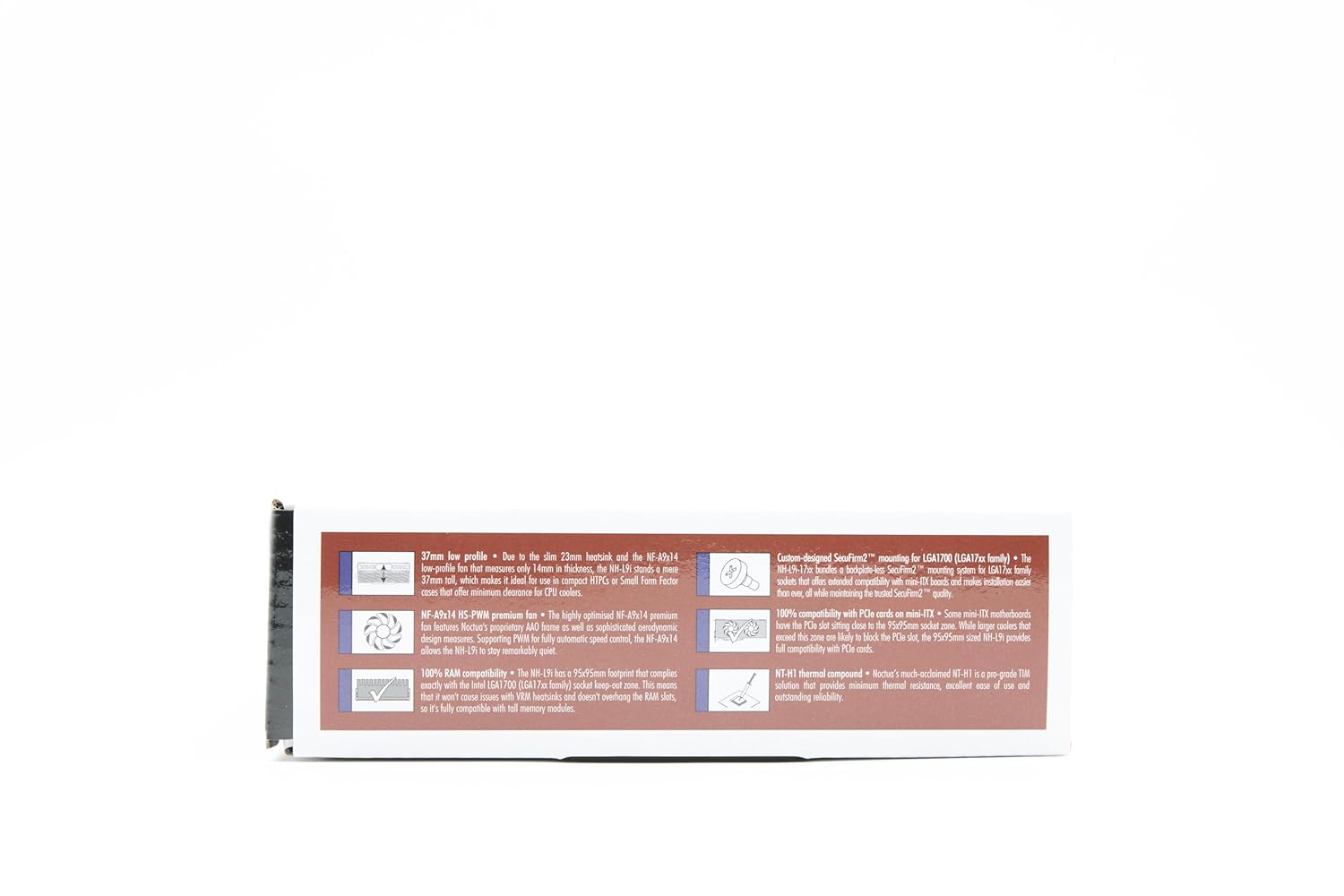 Due to the slim 23mm heatsink and the NF-A9x14 low profile fan that measures only 14mm in thickness, the NH-L9 stands a mere 37mm tall, which makes it ideal for use in compact HTPCs or Small Form Factor cases that offer minimum clearance for CPU coolers.
