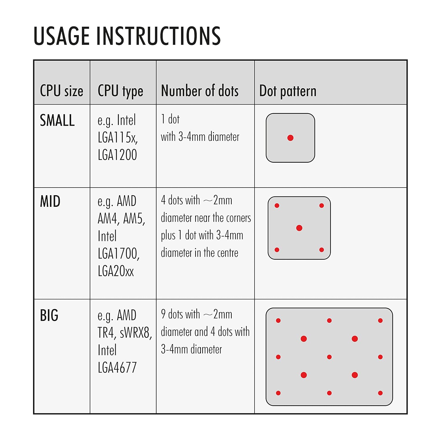 Sufficient for around 3-20 applications (depending on the size of the CPU or GPU, e.g. around 3 applications for large CPUs such as TR4 and around 20 for small CPUs such as LGA1151), the classic 3.5g packaging size is ideal for most users who only install coolers every now and then.