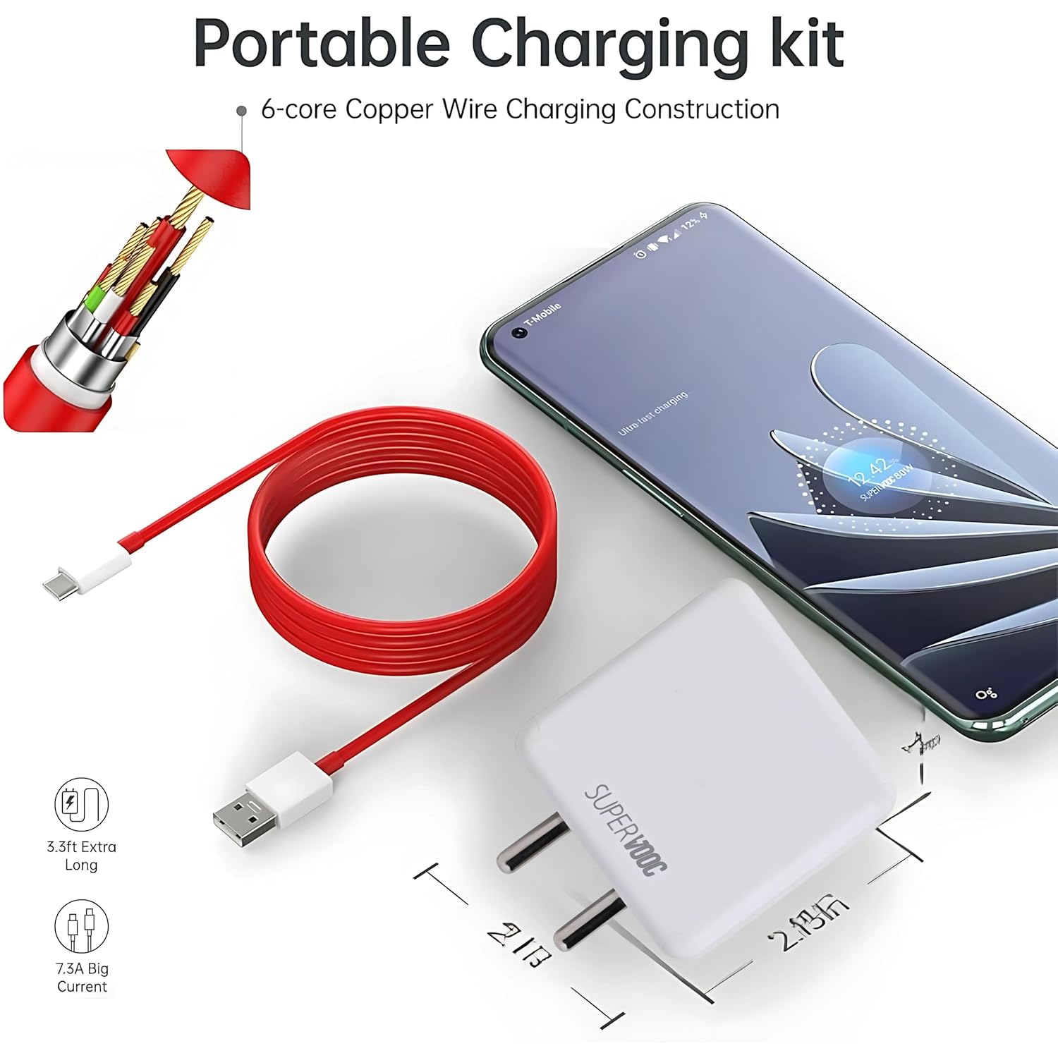 This usb Charger is your safe and reliable choice. With smart chip, the SuperVooc charger protects your mobile phone from over-current, over-voltage, over heating, overcharge and short circuit.