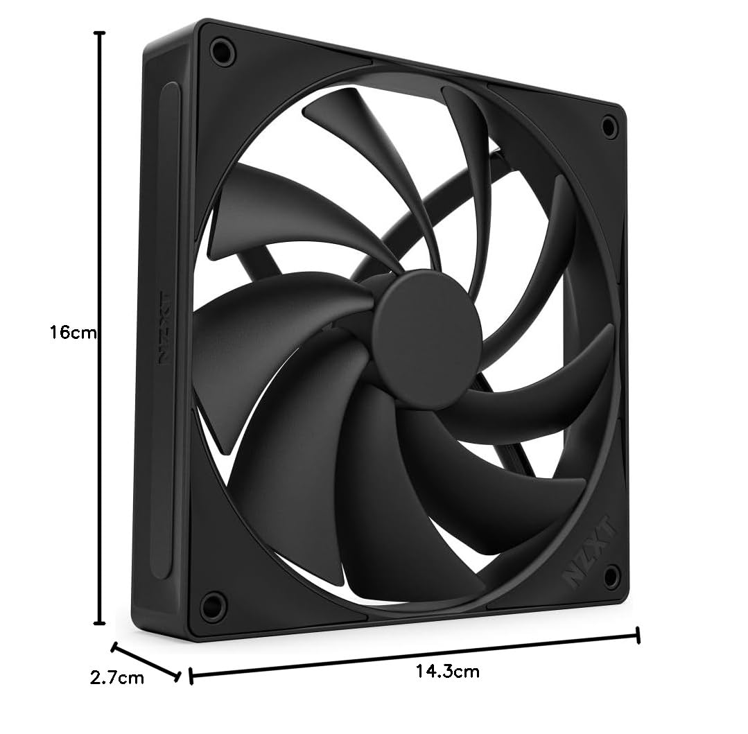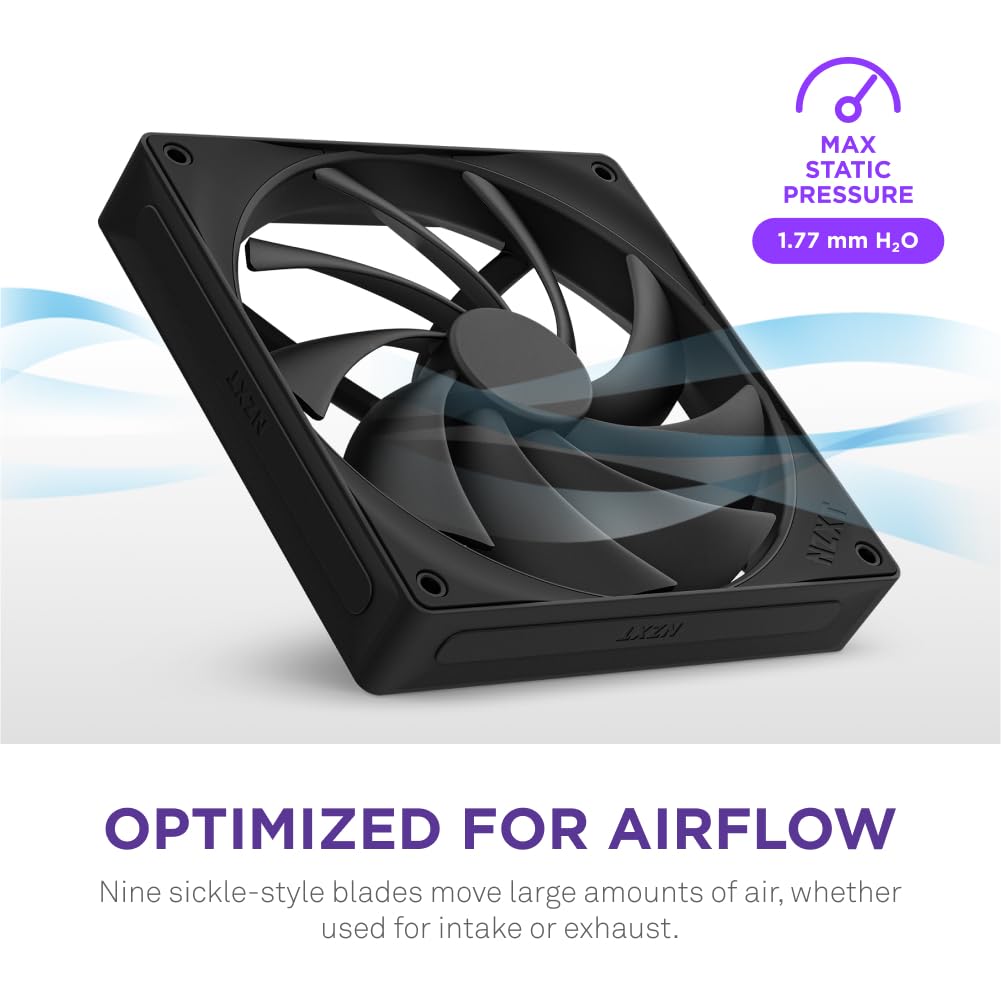 NZXT F140Q, 120mm Quiet Airflow PC Case Fan, Intake or Exhaust, Chamfered Frame for Concentrated Air, Fluid Dynamic Bearings, Low Noise, PWM Control, Black