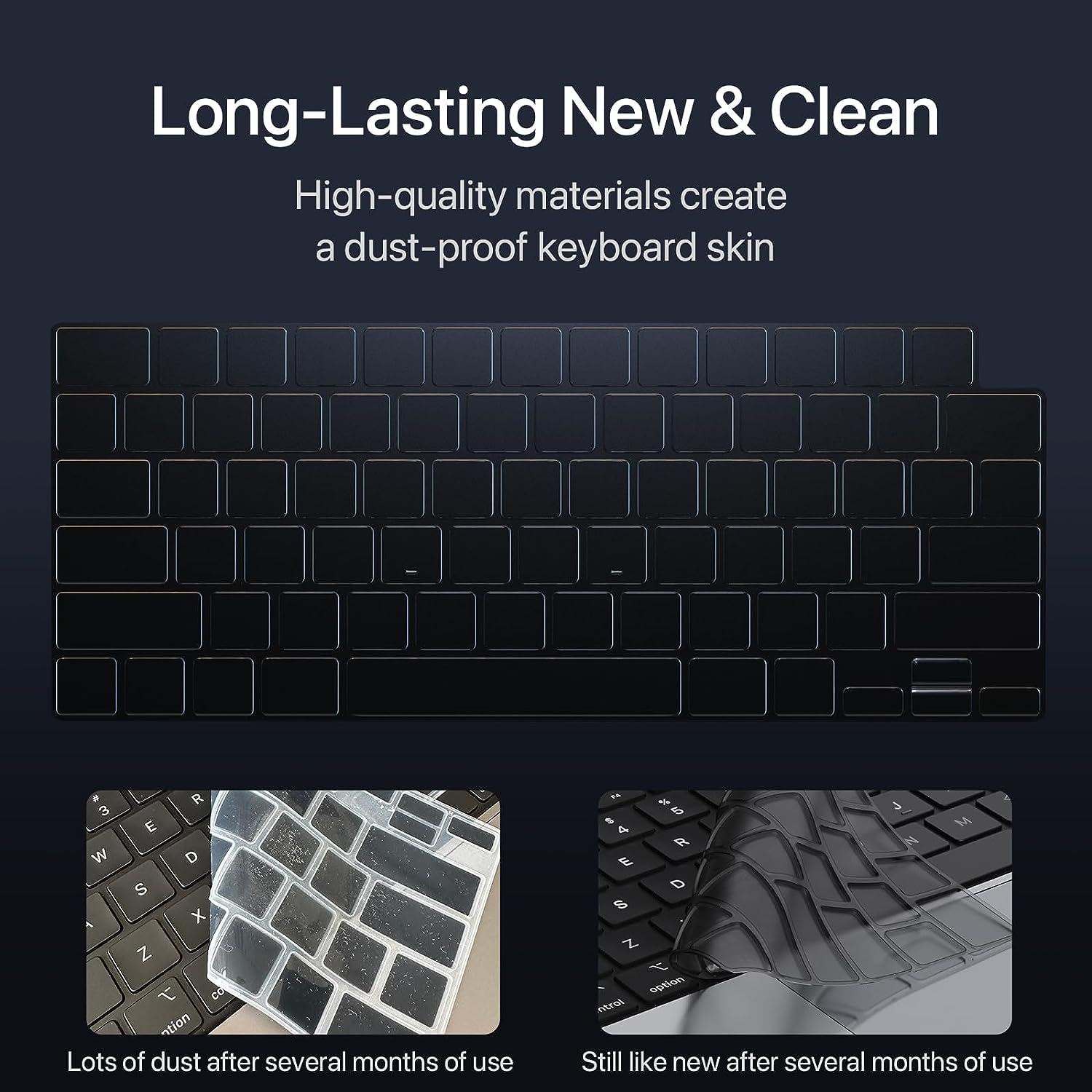 Oaky Premium Keyboard Skin Cover for 2024-2021 MacBook Air 13.6 inch 15.3 inch M2 M3 M4 & MacBook Pro 14/16 inch 2021-2024 M4 M3 M2 M1 Pro/Max Chip Keyboard Protector – Translucent Grey