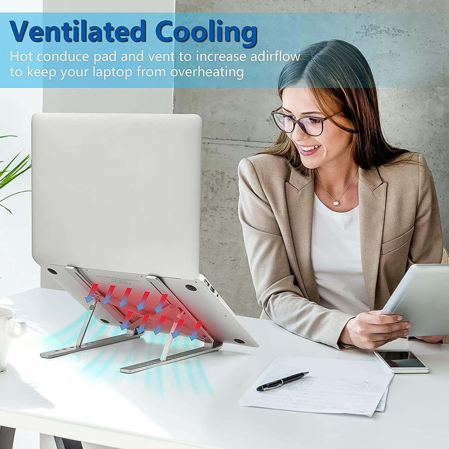 Versatile for Home, Office & Gaming Use: This laptop stand is perfect for any environment, whether you’re working from home, at the office, or gaming. Its adjustable height, cooling feature & portability make it a versatile addition to any workspace.
