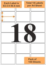 Oddy A4 Self Adhesive Paper Label Stickers for Laser & Inkjet Printers – 18 Labels per Sheet – Pack of 100 Sheets – for Shipping, Address, Folders, Industrial use