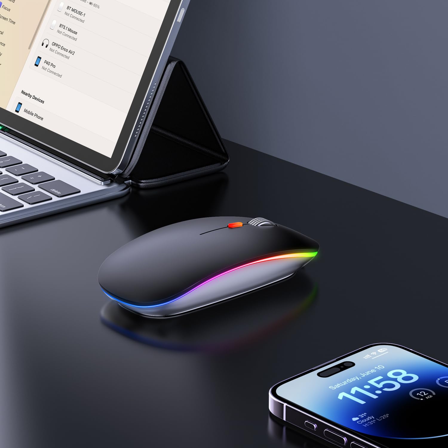 Customers find the wireless mouse to be of good quality, with a rechargeable battery that’s a big plus, and appreciate its premium appearance, particularly the beautiful sidewall lighting in the dark. They praise its noiseless clicks, ease of use, and seamless Bluetooth and USB connectivity. The functionality receives mixed reviews – while some say it works well without issues, others report problems with left-click functionality. Similarly, opinions on value are divided, with some finding it worth the price while others consider it a waste of money.